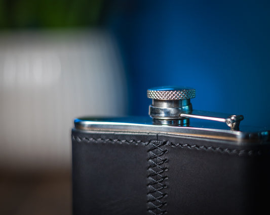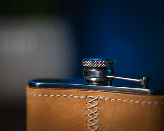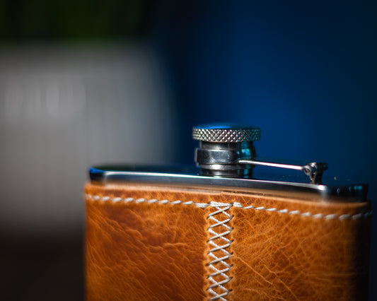 The Quaff Leather Wrapped Flask - Cognac Wax
