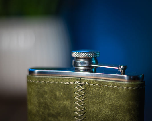The Quaff Leather Wrapped Flask - Olive Pueblo